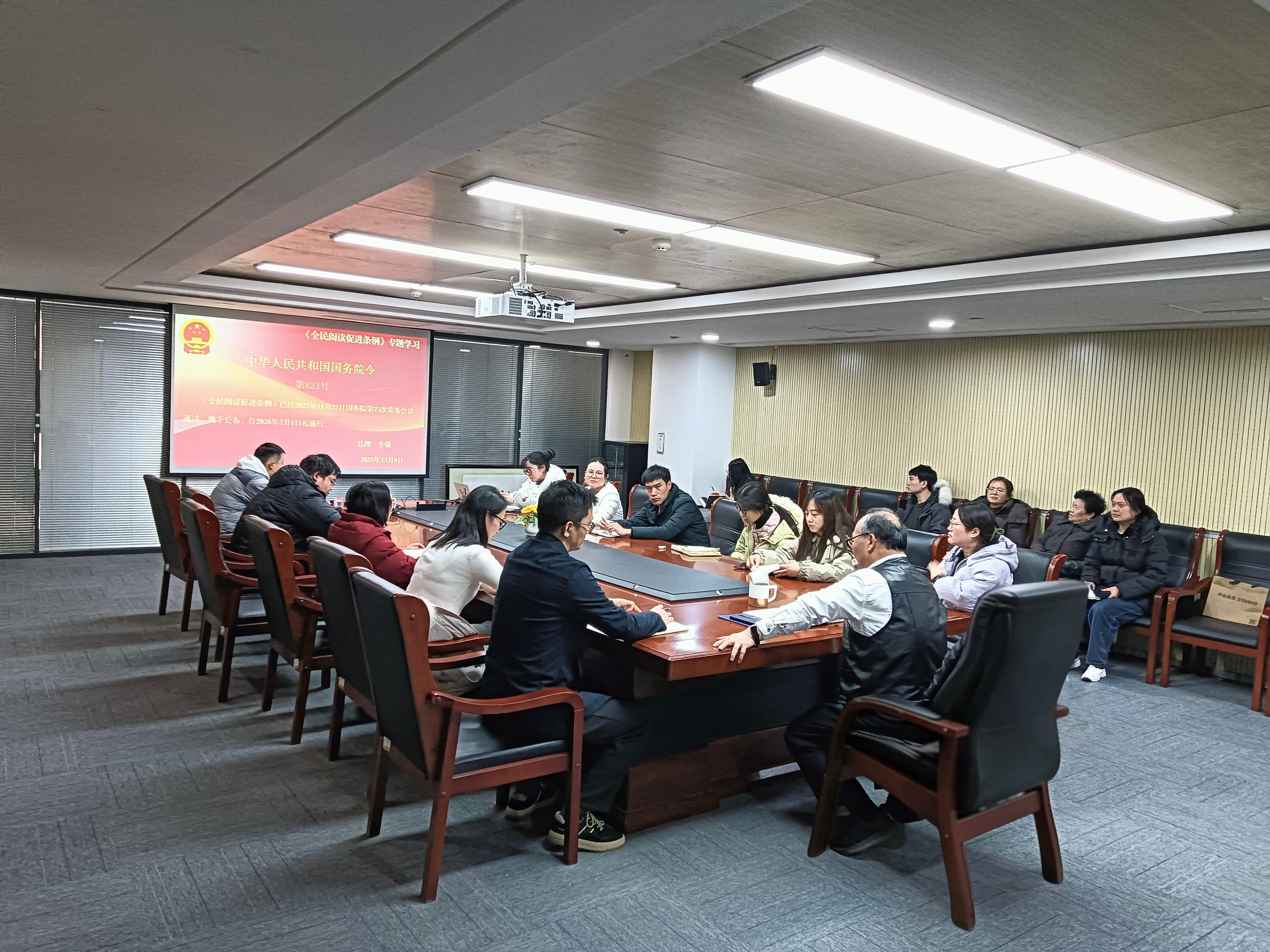 为深入贯彻落实国家关于推动全民阅读的战略部署,准确把握新时期阅读推广工作的新要求、新方向,12月24日上午,我校图书馆组织全体馆员召开专题学习会,深入学习国务院最新颁布的《全民阅读促进条例》(以下简称《条例》)。会议由图书馆馆长刘雪立主持,图书馆全体馆员参加了本次学习。
